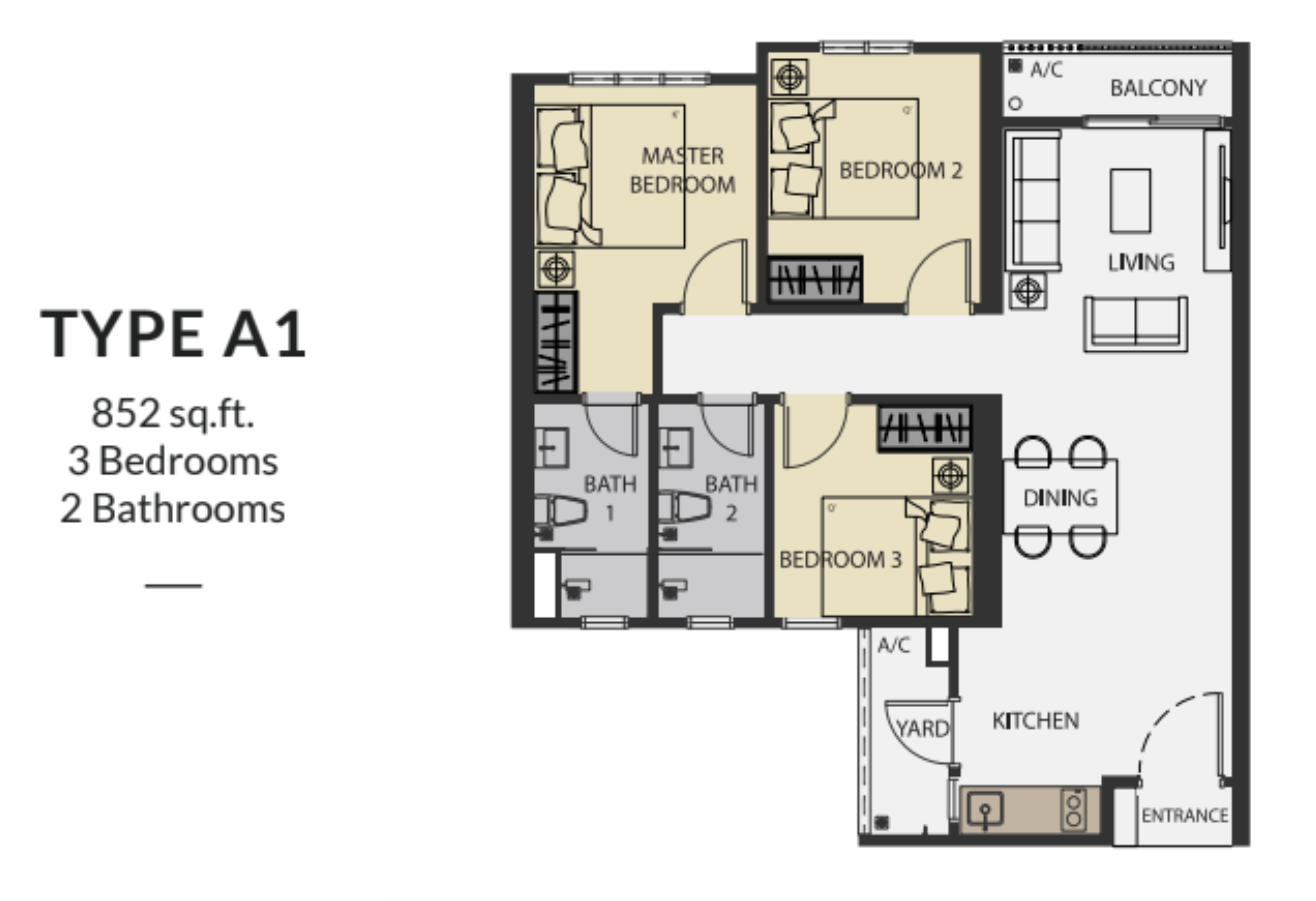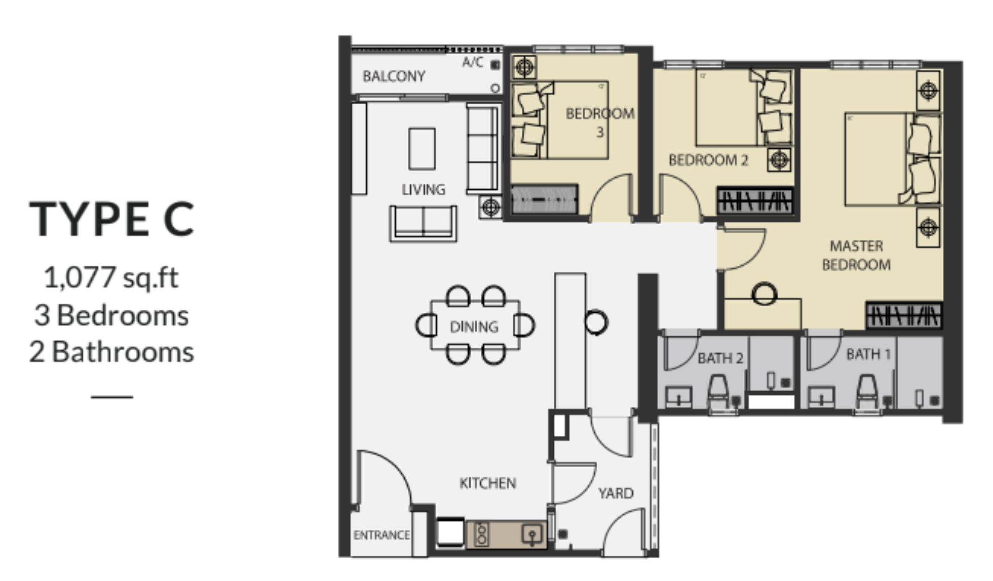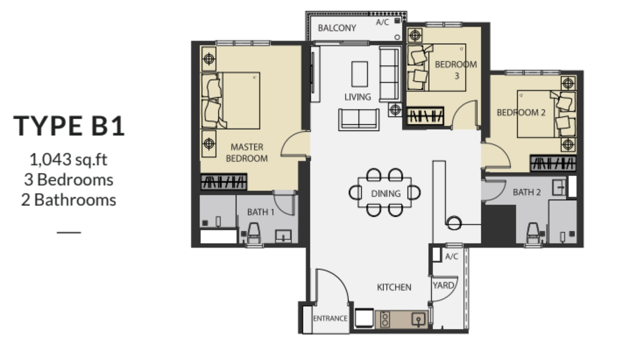 - Hassle-Free Move-In: Units come partially furnished with essential fittings—including kitchen cabinets, a fridge, air-conditioners, and a 2-in-1 washer/dryer—saving you time and renovation costs.